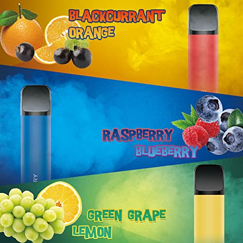 【REICHES FRUCHTIGES AROMA】 – Die Kombinationspackungen mit fünf Einweg Vape Stick: Schwarze Johannisbeere Orange, Grüne Traube Zitrone, Himbeere Blaubeere, Erdbeere Kiwi, Grüner Apfel, der erfrischende und leckere Geschmack, der Ihre ideale Synchronisation für das tägliche Verdampfen sein muss
