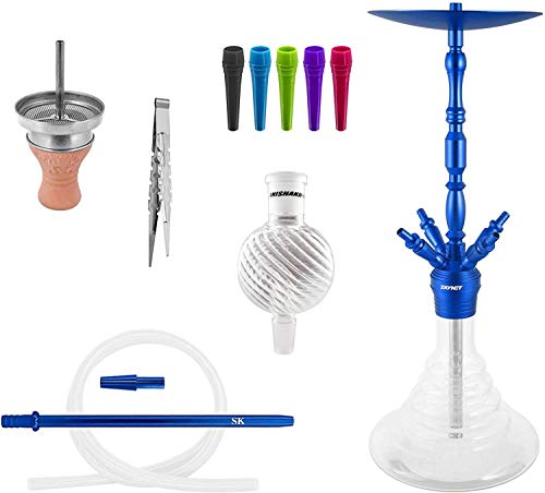 ✅Großes Komplettset bestehend leer Shisha, Schlauchset (Silikonschlauch, Mundstück), Kopfset (Tonkopf, Kofaufsatz, Kohlezange), Molassefänger Totenkopf und 100 Hygienemundstücken