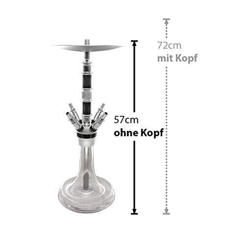 Skynet® Carbonia 2.0 Shisha Set Hookah 71cm Carbon Alu + Zubehör | Wasserpfeife Komplett Schlauch Mundstück Shishakopf…