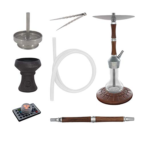 Skynet® ENZO Shisha Set Hookah 62cm Holz Wood Optik V2A Edelstahl + LED + Davinci Steinkopf | Wasserpfeife Komplett…