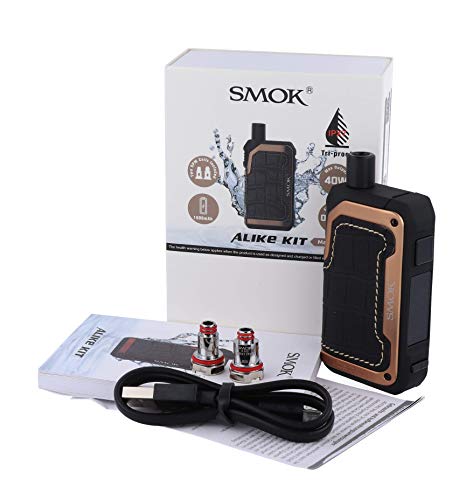 Mit dem Alike E-Zigaretten Set von Smok erhalten Sie eine E-Zigarette, welche sich durch seine großen Kapazitäten beim Speicherzelle und beim Pod auszeichnet. Der fest verbaute Speicherzelle weist eine Akkukapazität von 1600mAh auf. Den Alike Pod können Sie mit bis zu 5,5ml Liquid befüllen. Da der Speicherzelle eine IP67-Zertifizierung besitzt, ist dieser geschützt gegen Wasser und Staub. Über ein 0,96 Steuer Farbdisplay haben Sie die Möglichkeit verschieden Parameter abzulesen, wie zum Beispiel mit welcher Ausgangsleistung Sie dampfen. Währenddessen können Sie eine maximale Ausgangsleistung von 40 Watt eichen. Der Alike Pod kann mit allen gängigen RPM Verdampferköpfen von Smok schaffen. Im Lieferumfang befindet sich ein RPM Mesh 0,4 Ohm Verdampferkopf für das Dampfen im Sub-Ohm Stückchen und ein RPM DC 0,8 Ohm MTL Verdampferkopf. Mit diesem können Sie von Mund zu Lunge (MTL) dampfen. Akzeptieren Sie bitte, dass die Verdampferköpfe zu den Verschleißteilen einer E-Zigarette gehören. Verarbeiten Sie diese regelmäßig gegen einen neuen aus um so einer negativen Geschmacks- und/oder Dampfentwicklung entgegenzuwirken.
