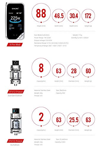 X-Priv, eine perfekte Kombination aufgebraucht Kraft und Schönheit. Es ist vorne mit glasartigem Material bezogen, das Ihnen ein luxuriöses Aussehen und einen hochauflösenden Bildschirm bietet. Es verwendet ansonsten gestaltete Benutzeroberfläche, einfacher und intuitiver denn andere Produkte. Und seine Ausgangsleistung kann bis zu 225W, die können fertigstellen unterschiedliche Anforderungen von Dampfstrahlern. Der Feuerschlüssel von X-Priv ist auf der prellen Seite anderweitig gestaltet, im Überfluss einfacher zu bedienen denn Vor. Ungeachtet alledem verwendet es TFV12 Prince Panzer, mit kraftvollen V12 Prince Kernen können Sie den massiven Dampf besoffen genießen. Leistungsstarke Diagramm, schickes Aussehen, X-Priv ist hier, um Sie zu erobern! Innovation verändert das Vaping-Erlebnis feststehend!