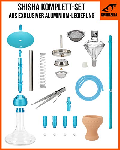 SMOKEZILLA® MINYA 1S Shisha Set Skye Blue – Schlauch + Anschluss & Mundstück – Inklusive Shisha Zubehör Mit Kaminkopfset…