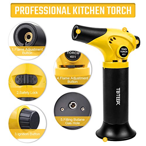 TBTEEK Küchenbrenne Flambierbrenner, Bunsenbrenner mit Sicherheitsverschluss und verstellbarer Flamme zum Kochen, Brûlée…