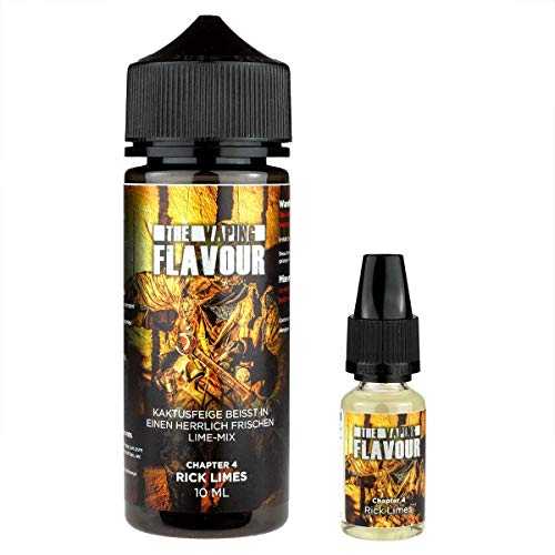 Von The Vaping Flavour stammt das Aroma Ch.4 Rick Limes, welches zur neuen Longfill-Aromenreihe The Walking Flavour gehört. Das Ch.4 Rick Limes Aroma kombiniert beim Dampfen in einer elektronischen Zigarette die Geschmäcker von Kaktusfeigen und Zitronen. Da es sich um ein Bottle in Bottle Aroma handelt, einsacken Sie neben Landbau eine 10ml Flasche des Ch.4 Rick Limes Aromas und eine 120ml Abgelutscht-Flasche. Der Hersteller spricht eine Jugendjahre von 5-10 Tagen sämtliche. Bitte denken Sie, dass es sich neben Aromen um hochdosierte Konzentrate handelt.