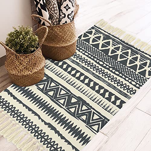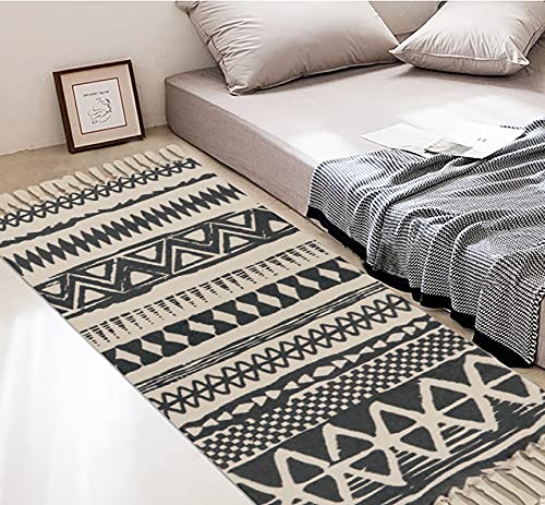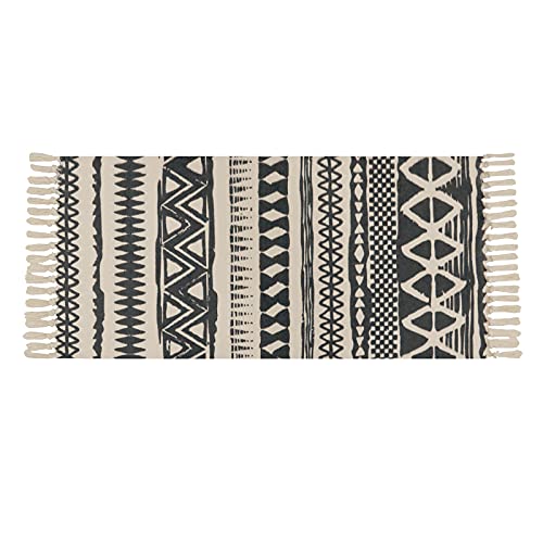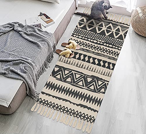 Baumwollmaterial: natürliche, ungebleichte Baumwolle, handgefertigte, gewebte Teppiche, 60 x 130 cm, mit extra schicken Fransenquasten auf jeder Seite, Tribal-Motiv auf der Oberfläche, beidseitig verwendbar.