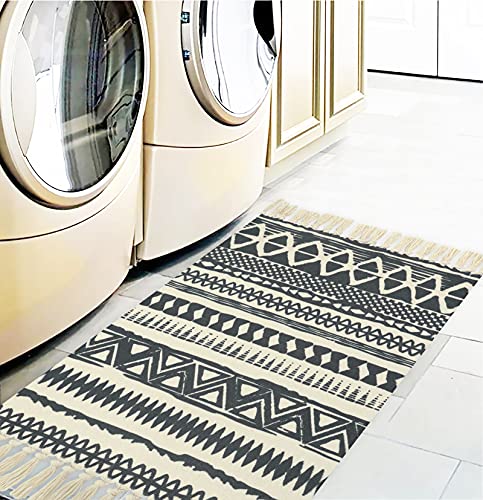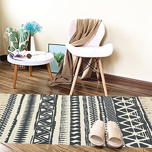 Timeet Baumwolle Boho Teppich Wohnzimmer Waschbarer Teppich Läufer Beige mit Quasten Grau Bedruckt Teppiche…