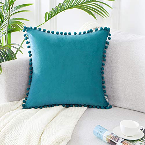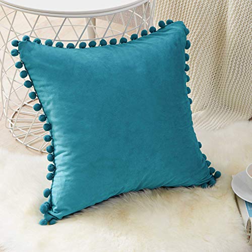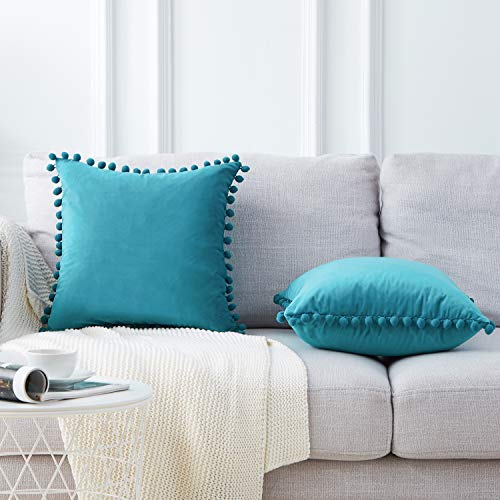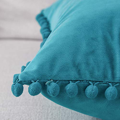 Topfinel 2er Set Samt Kissen mit Pompoms Einfarbig Kissenbezüge Dekorative Kissenhülle Kopfkissen Sitzkissen Dekokissen…