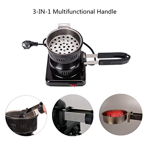 Vielseitig: 3in1 abnehmbarer Griff ist verwendbar denn Kohleschale, Anzündergriff oder Zange. Die Kohle kann ohne den Anzünder bequem im Korb transportiert werden.