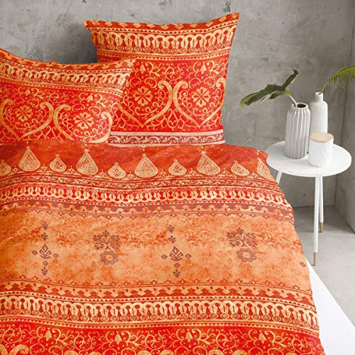 ✅: Orientalische Bettwäsche in warmen Farbtönen mit Ornamenten und verschnörkelten Verzierungen: Glänzende Mako-Satin Qualität für das ganze Jahr geeignet