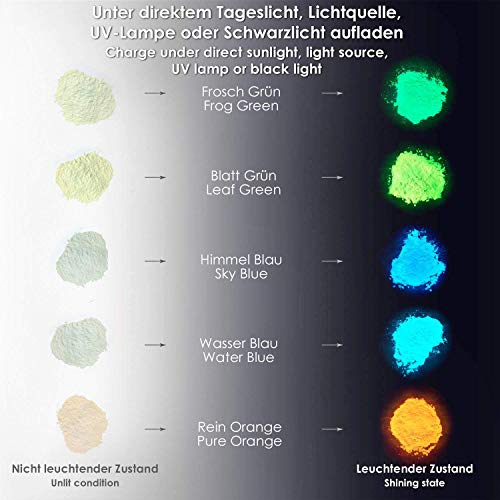 SELBSTLEUCHTENDES PULVER: 5 Neon Farbpulver je 20g (vollständig 100g) Glow In The Dark Pigment Pulver