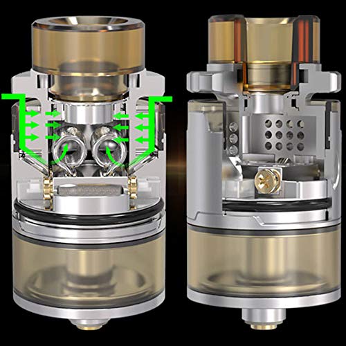 Das im Pyro V2 befindliche Deck kann dank des Aufbaus ohne Umbau/Adapter als Single- oder Dual-Coil gewickelt werden und das auch mit sehr großen Wicklungen. Das Verlegen der Watte ist durch die Position der Liquidlöcher und Airflowschlitze sehr einfach. Der Tank liegt unterhalb des Decks und die Airflowschlitze direkt neben der Wicklung, belüftet werden die Wicklungen sowohl von der Seite als auch von Unten.