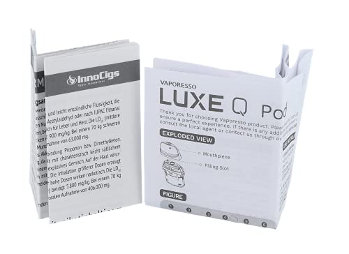 Von der Marke Vaporesso stammen die Luxe Q Mesh Pod-Systeme. Sie haben die Stimmabgabe zwischen zwei Varianten; 0,8 Ohm oder 1,2 Ohm. Die Mesh Pods verfügen über fest verbaute Verdampferköpfe, sodass Sie das ganze Mesh Pod-System nach einiger Zeit modifizieren sollten. Diese gehören zu den Verschleißteilen und sollten freilich spätestens demzufolge ausgetauscht werden, sobald Sie eine Geschmacksverfälschung Ihres Liquids wahrnehmen und/oder eine sinkende Dampfentwicklung feststellen. Pro Spielart bekommen Sie zwei Luxe Mesh Pod-Systeme die statt die Luxe Q E-Zigarette mit 1000mAh in Anfrage kommen.