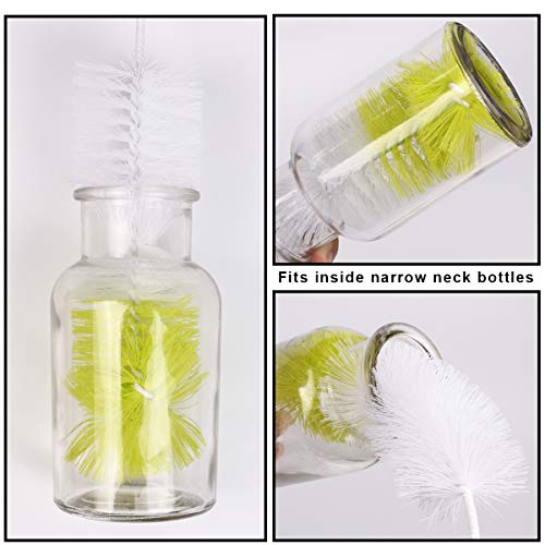 ?[Flexible Bürstenköpfe] – Alle bürsten sind mit einem langen und flexiblen drahtkern ausgestattet, mit dem die Bürstenköpfe um unbeholfene Winkel und schwer zugängliche Bereiche manövrieren können, um beispielsweise weinkaraffen mit schmaler Öffnung und breitem boden zu reinigen.
