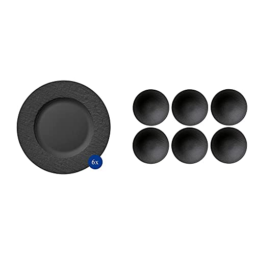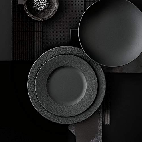 Villeroy & Boch – Manufacture Rock Speiseteller, 6 Unvollendetes, 27 cm, Premium Porzellan, spülmaschinen-, mikrowellengeeignet, Schwarz
