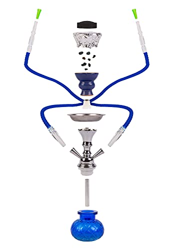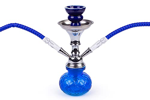 WEELOV Shisha 26 cm, mit 2 Schläuchen, Glas-Bowl Wasserpfeife in praktischer Größe, Hookah Orient stylisch – blau