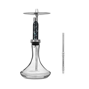 Shisha Set Komplett Marmorierung Schwarz mit Schlauch Bowl Kaminaufsatz Kopf Sieb Anschlüsse Mundstück Zange Zubehör…