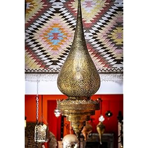 Orientalische Lampe Messing Pendelleuchte Gold Saud 140cm E27 | Marokkanische Design Hängeleuchte Leuchte aus Marokko…